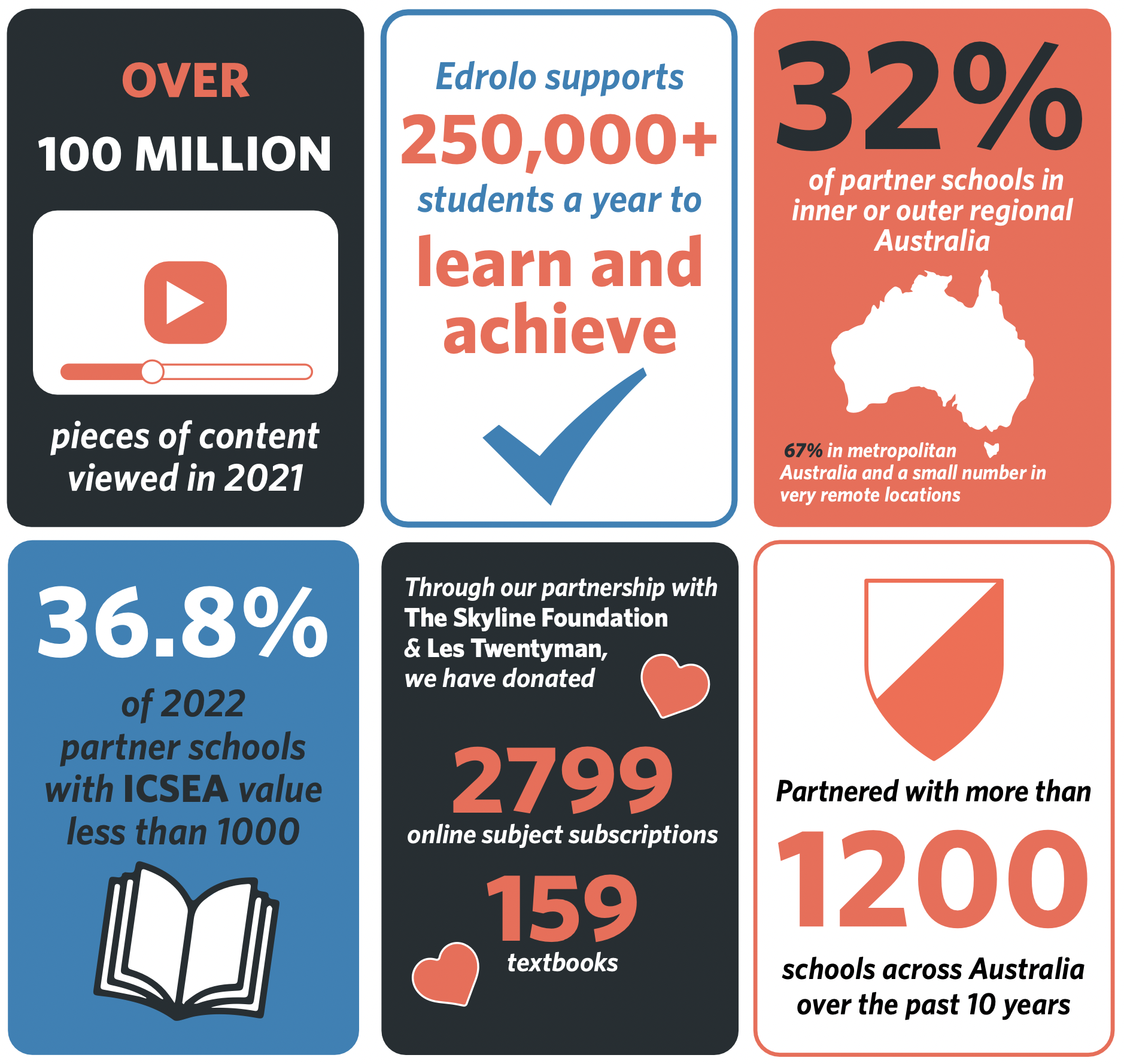 It’s hard to believe Edrolo has been creating and publishing curriculum resources for nearly 10 years now. We’ve partnered with 1000s of schools across Australia, helping teachers educate the next generation. Last year we reached a massive 71 million online video plays and 106 million pieces of content viewed by teachers and students through Edrolo.